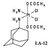 Nový preparát LA--12 [(OC-6-43)-bis(acetato)(1-adamantylammine)dichloroplatinum(IV)] byl poprvé popsán v r.2004,kdy byl studován účinek na mnoha nádorových liniích,jak k cisplatině citlivých,tak rezistentních,a kdy vykazuje vyšší účinnost než modelová látka cisplatina. Jedná se o čtyřmocný platinový preparát s objemným hydrofóbním ligandem adamantylaminem,který je zodpovědný za lepší vstup do buňky, je lépe rozpustný a je ho tudíž možno aplikovat perorálně. V současné době je za řazen do klinických studií fáze I. Dalším studiem byly potvrzeny nižší nežádoucí účinky (testování na myších)a překonání rezistence získané i vrozené u ovariálních linií A2780,A2780cis a SK-OV-3.