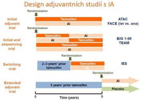 - Adjuvantní terapie pro postmenopauzální ženy s HR+ karcinomem prsu by měla zahrnovat IA
