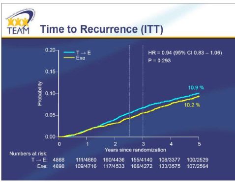 - Time to Recurrence (ITT): HR=0,94 (95% CI 0,83-1,06); P=0,293