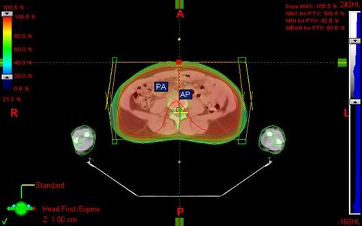 - Dávka 18 Gy/ 1,5 Gy/ 12 fr. do 40,5 Gy