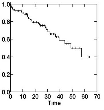 Graf. č. 1. Kaplan-Meyerova křivka přežívání v našem souboru