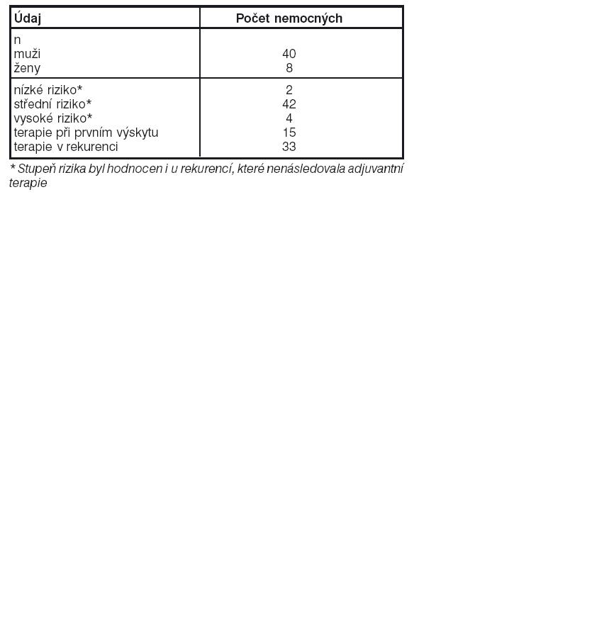 zařazeno dosud 48 nemocných, jejichž charakteristiky jsou uvedené v