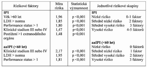 prognostického indexu (IPI) – podle The International Non-Hodgin’s