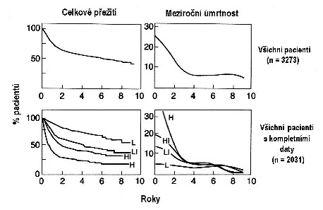 Obrázek 1 - Celkové přežití a míra úmrtnosti všech pacientů