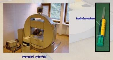 - intravenózní aplikace radiofarmaka – aktivita dle váhy pacienta