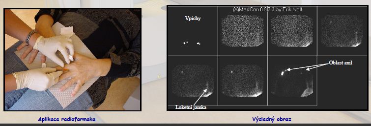 - aplikace do dorza rukou (pro srovnání se vyšetřují obě končetiny)