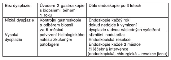 Stěžejním úkolem endoskopické dispenzarizace pacientů s prokázaným BJ je zachycení časných dysplastických a neoplastických změn a možnost jejich kurativního řešení.