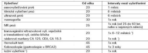 Doporučené schéma sledování pro ženy nosičky patogenní mutace v BRCA1/2 genech.