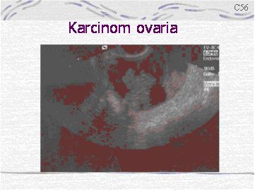 suspektní známky: komplexní cysty, solidní, intraluminální papilace, ascites, snížení indexu pulzatility (pod1,0) a rezistence (pod 0,4) na flowmetrii, bilaterální nález