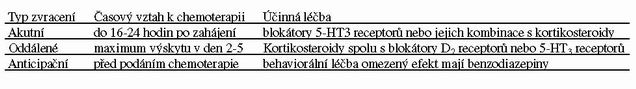 V časovém vztahu kcytostatické léčbě rozlišujeme tři různé typy zvracení, z nichž každý má poněkud jinou prevenci a léčbu.