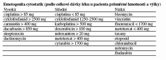 Emetogenita cytostatik (podle celkové dávky léku u pacienta průměrné hmotnosti a výšky)