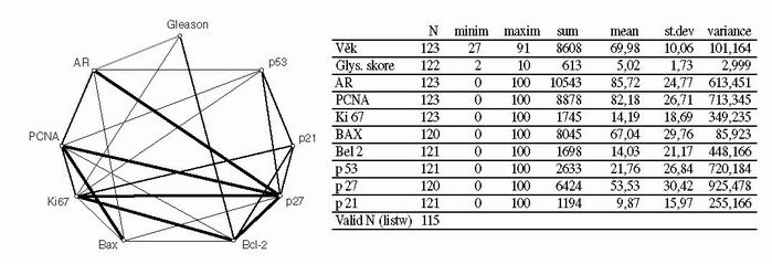 Na zobrazeném schématu regulačních vztahů uvnitř buněčného cyklu hormonálně dependentních nádorů má náš nález silné a velmi úzké vazby mezi p27 a několika faktory jako jsou: androgenní receptory, znaky proliferační aktivity (PCNA, Ki67) a exprese produktů pro– (anti)– apoptotických genů (BAX / Bcl-2).