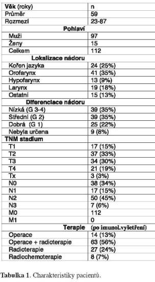 Do studie bylo zahrnuto 112 pacientů s HNSCC léčených v letech