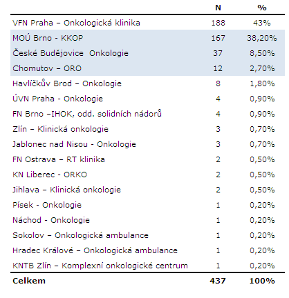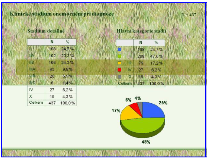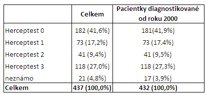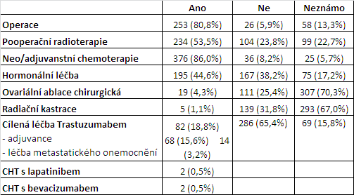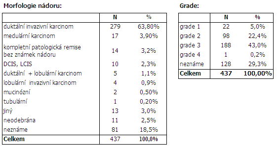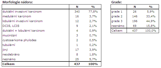 Celkově zaznamenáno a vyhodnoceno 437 pacientek s validními záznamy, které byly diagnostikovány 9/1995 - 6/2012
