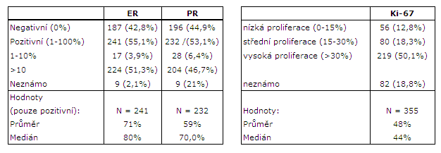 Pozitivita hormonálních receptorů a proliferace N = 437