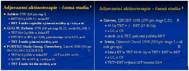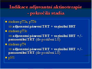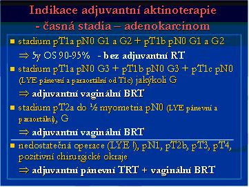 - pooperační radioterapie snižuje vznik vaginálních metastáz z 7-20% na 1%