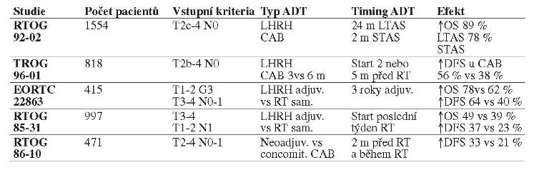Tab. č. 2: Randomizované studie kombinované hormonoterapie a radioterapie