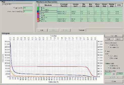 zhodnocením distribuce dávky ve všech skenech v PTV a kritických