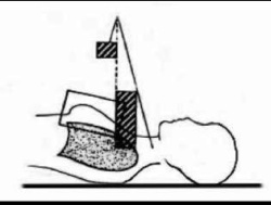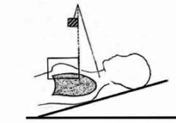 - a) vyrovnáním roviny tangenciálních polí s rovinou ozařovacího stolu podložením hrudníku (fixační zařízení) (obr. 7)
