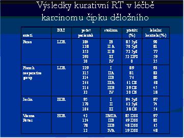 všechny 3 možnosti mají v současnosti srovnatelné léčebné výsledky, důležitým prognostickým faktorem je velikost léze - stadium IIB, IIIA, IIIB