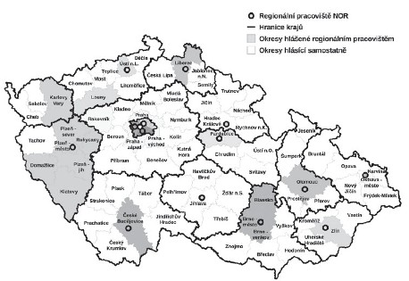 Obrázek 1. Regionální organizace center při pořizování dat do NOR