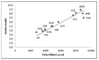 Průměrný počet hlášení do NOR za rok (dle let 2004–2008) |