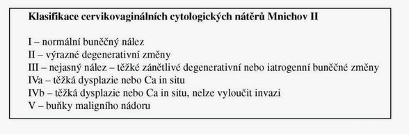 Tabulka 3 Stručný přehled klasifikace cervikovaginálních cytologických nátěrů "Mnichov II"