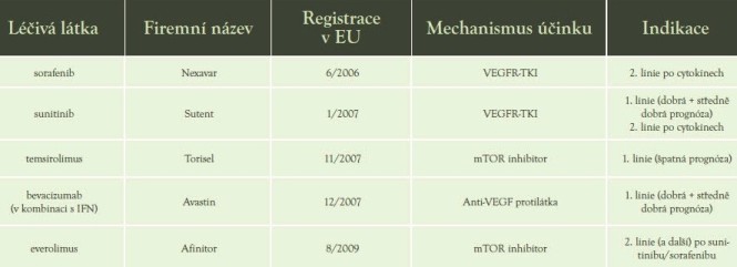 Pozitivní změnu tohoto terapeutického nihilismu léčby generalizovaného karcinomu ledviny přinesly až klinické studie se sunitinibem a sorafenibem, bevacizumabem v kombinaci s interferonem alfa (IFN alfa), temsirolimem a everolimem.