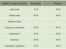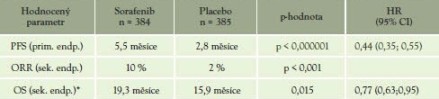 Tabulka 10: porovnání léčby sorafenibem versusplacebem