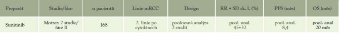 Tabulka 13 Výsledky poolované analýzy dvou jednoramenných studií se sunitinibem ve 2. linii mRCC po selhání IFN-alfa