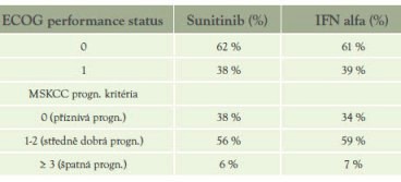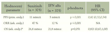 Tabulka 2: Porovnání léčby sunitinibem versus IFN alfa