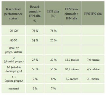 Tabulka 4: Porovnání léčby bevacizumabem + IFN alfa versusIFN alfa