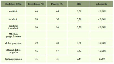 everolimus 10 mg p.o. + BSCversus placebo + BSC (tabulka 8)
