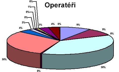 Graf znázorňuje rozložení operatérů, většinu výkonů dělali dva operatéři, další operatéři pak pod jejich vedením.