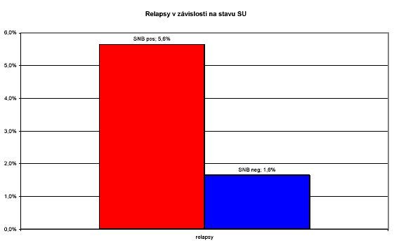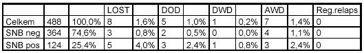 Pacientky jsou pravidelně sledovány, v následující tabulka ukazuje množství relapsů v jednotlivých skupinách u pacientek sledovaných 2 a více let.