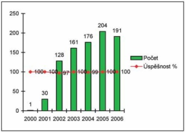 Graf 1: Počty operací v jednotlivých letech a jejich úspěšnost