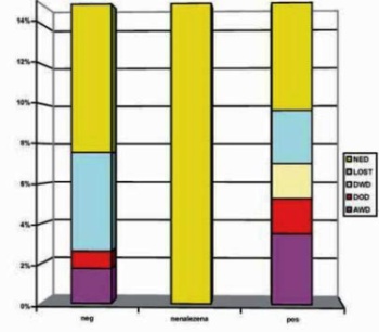 Pacientky jsou dále sledovány. Celkové doby od operace minimálně 2 roky dosáhlo prozatím 463 pacientek, 20 pacientek vypadlo ze sledování. Relapsů jsme zaznamenali 15, z toho 6 (5,3 %) u pacientek s pozitivní sentinelovou uzlinou a 9 (2,6 %) u pacientek s negativní sentinelovou uzlinou. Ve všech případech se jednalo o vzdálenou diseminaci. Ani v jednom případě, a to v celém souboru, jsme prozatím nezaznamenali regionální relaps v axille.