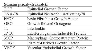 Statisticky významně zvýšeny byly: IL-6, IL-8, VEGF, bFGF u 3.
