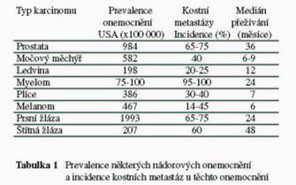 Upraveno podle zdrojů: Coleman RE: Skeletal complication of malignancy. Cancer 1997; 80 (suppl): 1588-1594 a National Cancer Institute. US Estimated Prevalence Counts on 1/1/2000.