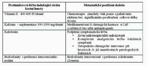 Tabulka 2 Prevence a léčba skeletálních komplikací