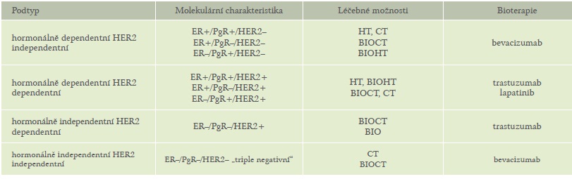 Tabulka 1: Léčebné možnosti v první linii u jednotlivých podskupin metastazujícího onemocnění prsu