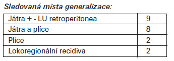 Pacienti byli sledováni v letech 2009-2011 od doby zjištění generalizace onemocnění, během celé léčby až do jejího ukončení a převedení do symptomatické péče.