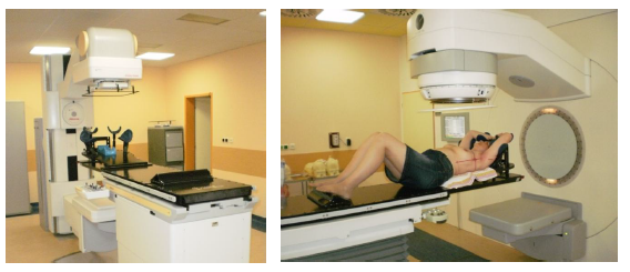 Na našem pracovišti klinické a radiační onkologie ve Znojmě provádíme ozáření pacientek s karcinomem prsu na lineárním urychlovači Elekta Precise a k simulaci používáme přístroj Simulix Evolution. Nejčastěji používáme brzdné záření o nízkých energiích – 6 MV, u větších objemů upřednostňujeme energie 15 MV. Pro ozařování boostů na oblast tumoru či lůžka tumoru je voleno buď elektronové pole nebo zmenšené fotonové pole dle hloubky uložení tumoru či lůžka tumoru. Lineární urychlovač je vybaven vícelamelovým kolimátorem – MLC a verifikačním zařízením, pro tvorbu portálových snímků. Pacientky s karcinomem prsu ozařujeme ve všech terapeutických indikacích, nejčastěji však adjuvantně tj. po operaci prsu. Další možností je ozáření radikální, u lokálně pokročilých a z nějakého důvodu inoperabilních nádorů prsu nebo se záměrem paliativním.