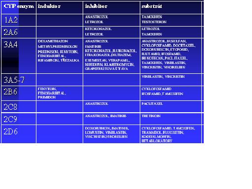 Jaterní clearance a aktivita cytochromu P-450 ovlivňuje AUC u řady cytostatik