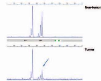 and non-tumor tissue are shown. Arrow shows reduced intensity of longer all ele.