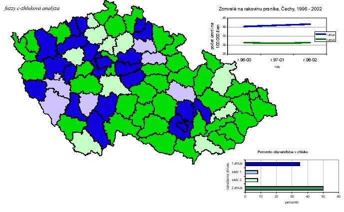 V prvom, alebo skôr prvom zhluku, s vysokým a narastajúcim trendom mortality na rakovinu prsníka žije 43% obyvateľstva Českej republiky.