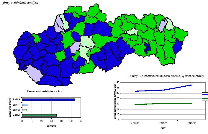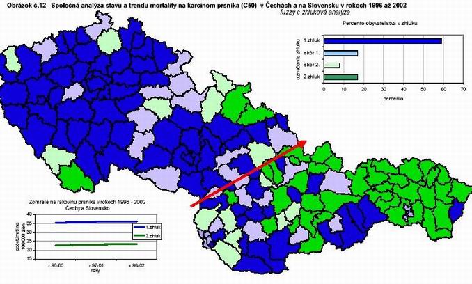 V spoločnom výpočte sme urobili fuzzy c-zhlukovú analýzu stavu a trendu mortality na rakovinu prsníka pre všetky okresy Čiech aj Slovenska s cieľom nájsť spoločný alebo rozdielny vývoj v oboch štátoch.
