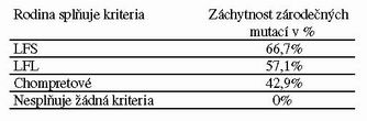 Záchytnost zárodečných mutací dle kritérií
