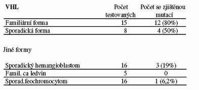Von Hippel-Lindau syndrom, gen VHL, je testován rutinně v UBLG FN Motol, 2LFUK. Vyšetření je prováděno i pro pacienty ze SR.