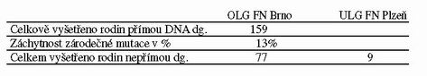 Prenatální diagnostika byla provedena ve FN Brno 4x, jednou přímou a 3x nepřímou metodou. Přímá diagnostika NF2 je nyní zaváděna na OLG FN Brno, vyšetřeno 7 pacientů.